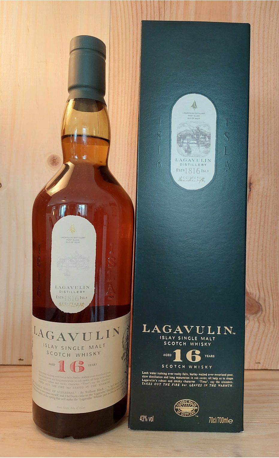 Islay Single Malt Scotch Whisky. Vollmundig, tiefgründig, komplex, maritim, rauchig, dabei weich, langer Nachhall. Zurecht ein Klassiker.