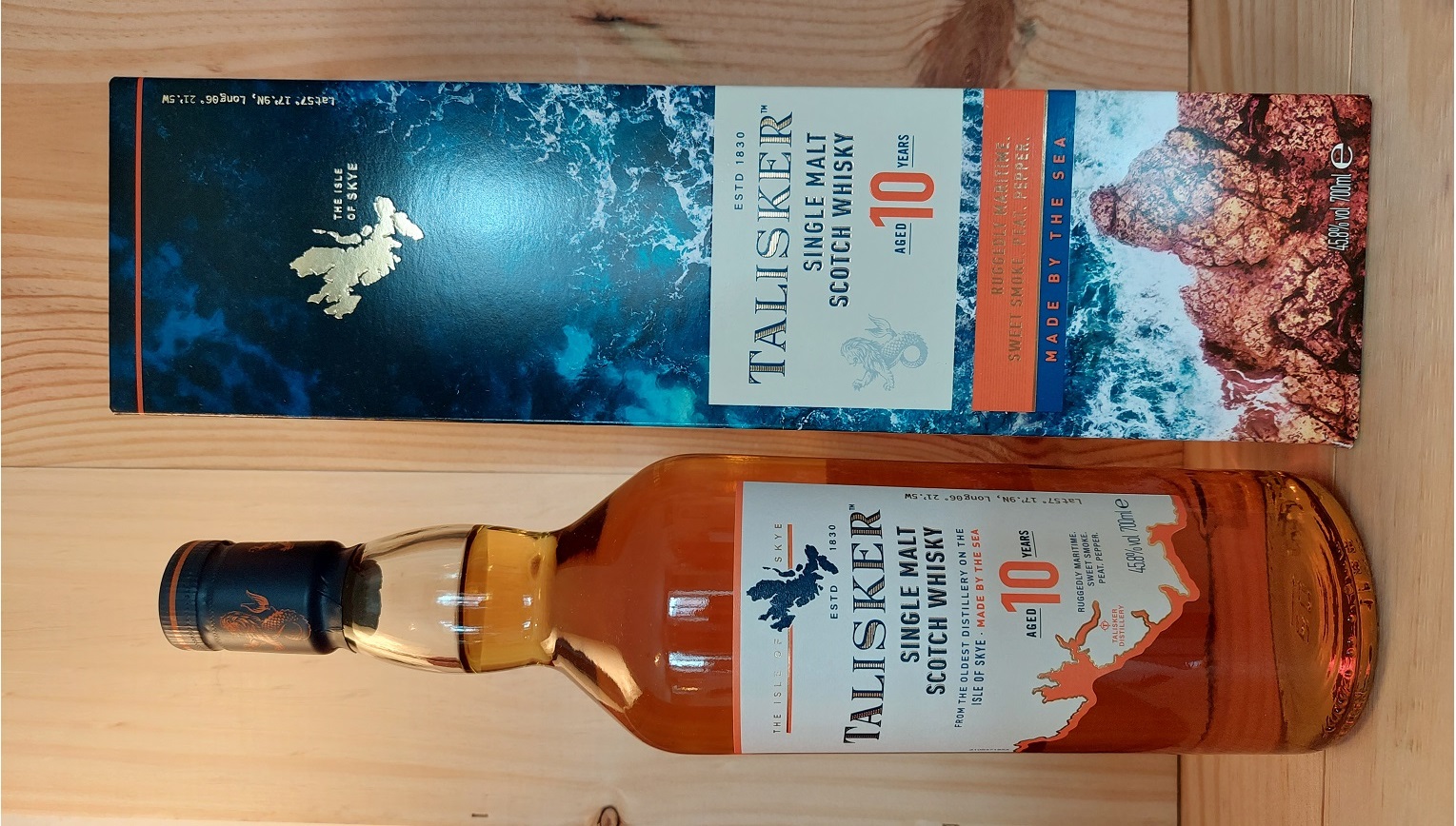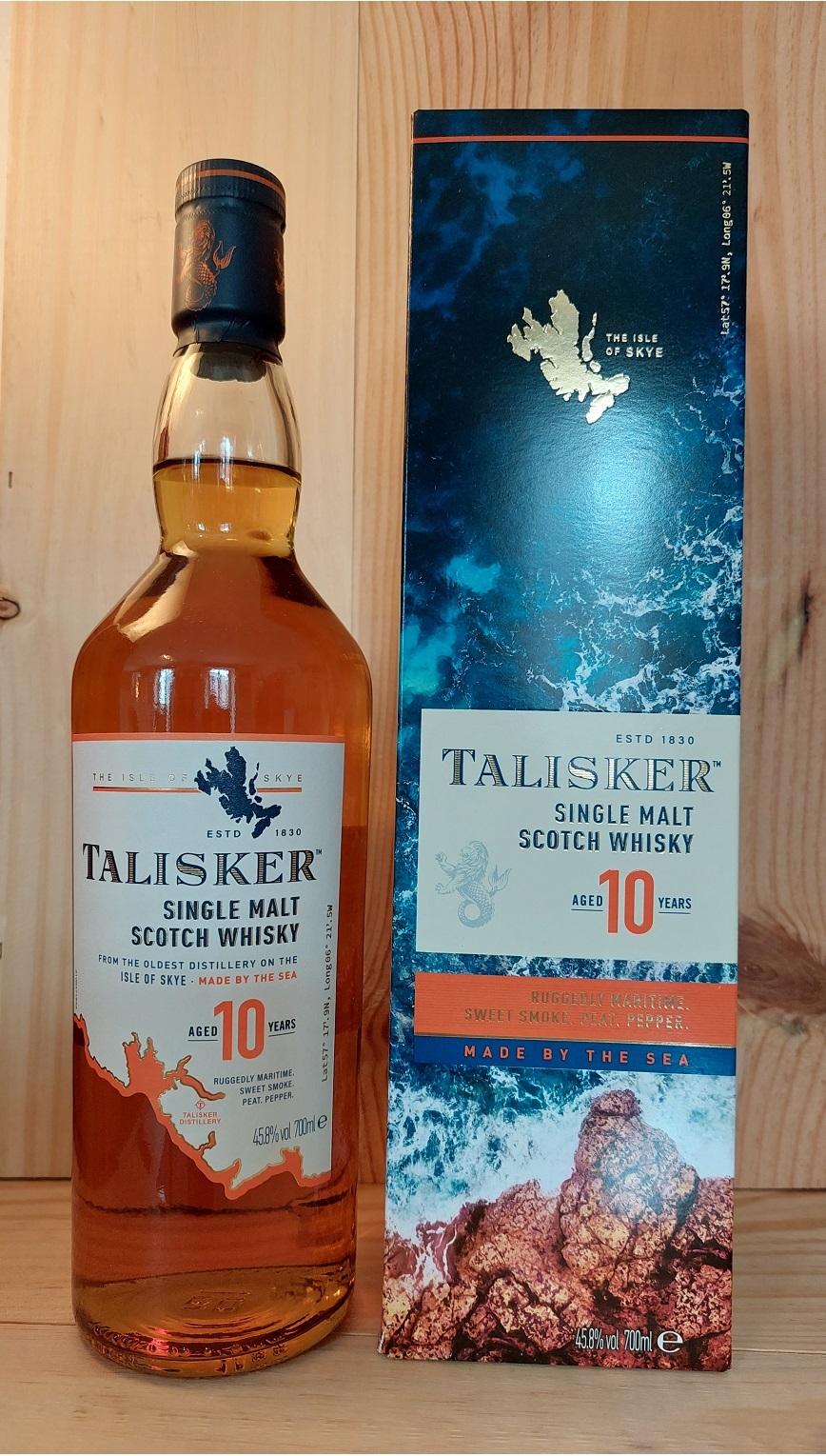 Single Malt Scotch Whisky, Isle of Skye. Süßlich-rauchig, kraftvoll, maritim, leichte Zitrusnote, malzig, würzig, starker Abgang. Die älteste Distillerie auf der Isle of Skye.