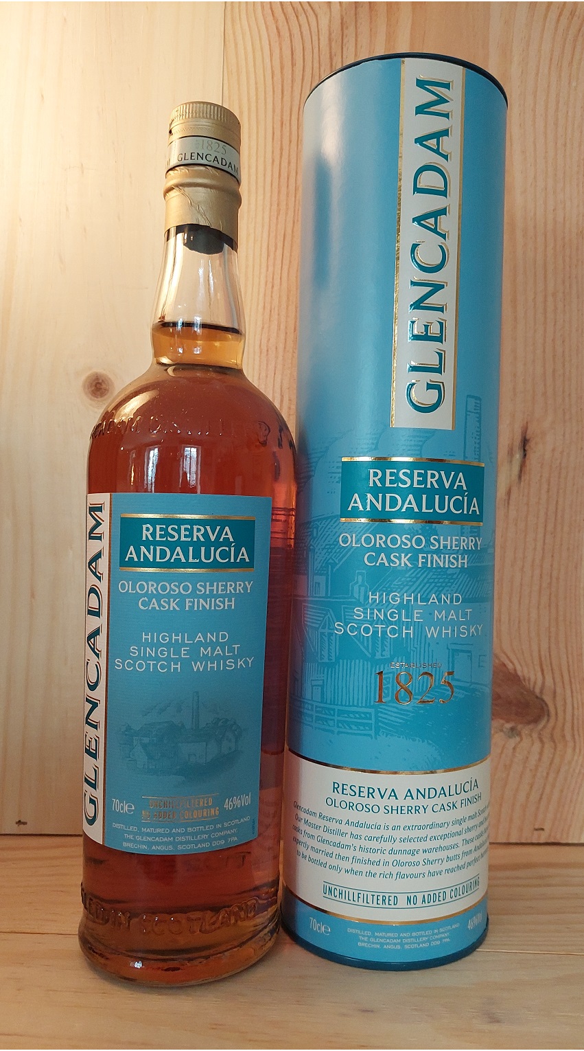 Highland Single Malt Scotch Whisky. Oloroso Sherry Cask Finish, weich, feine Sherry-Note, süße Früchte, aber nicht überladen, guter Nachhall. Die Brennerei Glencadam wurde 1825 gegründet und befindet sich in der Nähe der Stadt Brechin.