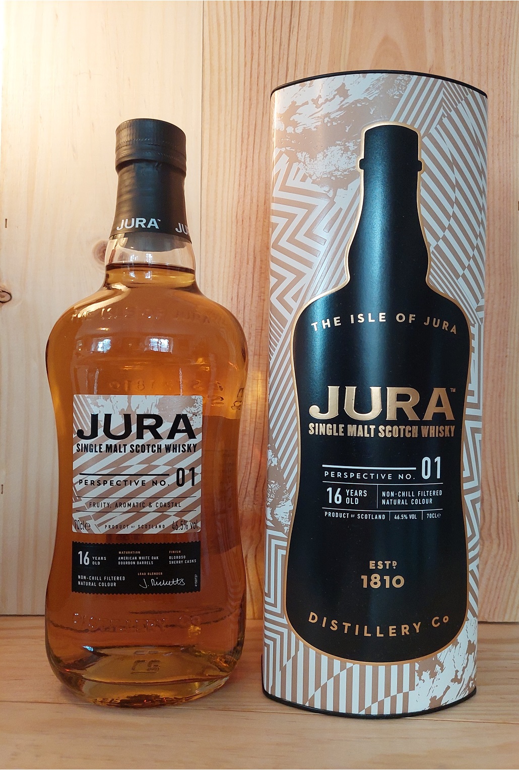 Single Malt Scotch Whisky, Isle of Jura. The Highland from the Island. Sherrynoten, feines Aroma von Heidekraut, dezenter maritimer Einschlag, fruchtig, nussig, harmonisch, repräsentiert den typischen Stil des Hauses.